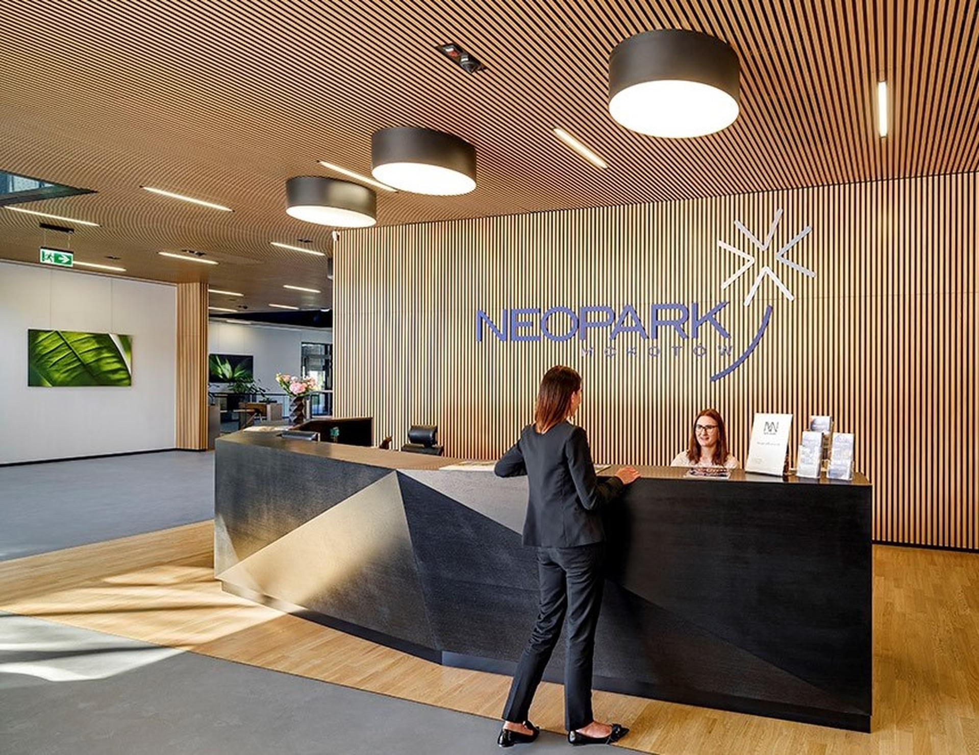 Neopark is a modern and stylish office campus located in the heart of Mokotów – one of Warsaw’s key business hubs – with excellent transport connections and quick access to Chopin International Airport. At New Work Neopark, tenants benefit from bright, fully furnished offices, the support of on-site Customer Care Specialists, access to meeting rooms, quiet coworking zones, phone booths and phone rooms, community events, and the option to register their company address. Designed with comfort and well-being in mind, the campus features a green courtyard and openable windows for fresh air. Tenants can also enjoy an outdoor terrace for short breaks and an on-site gym for everyday convenience.