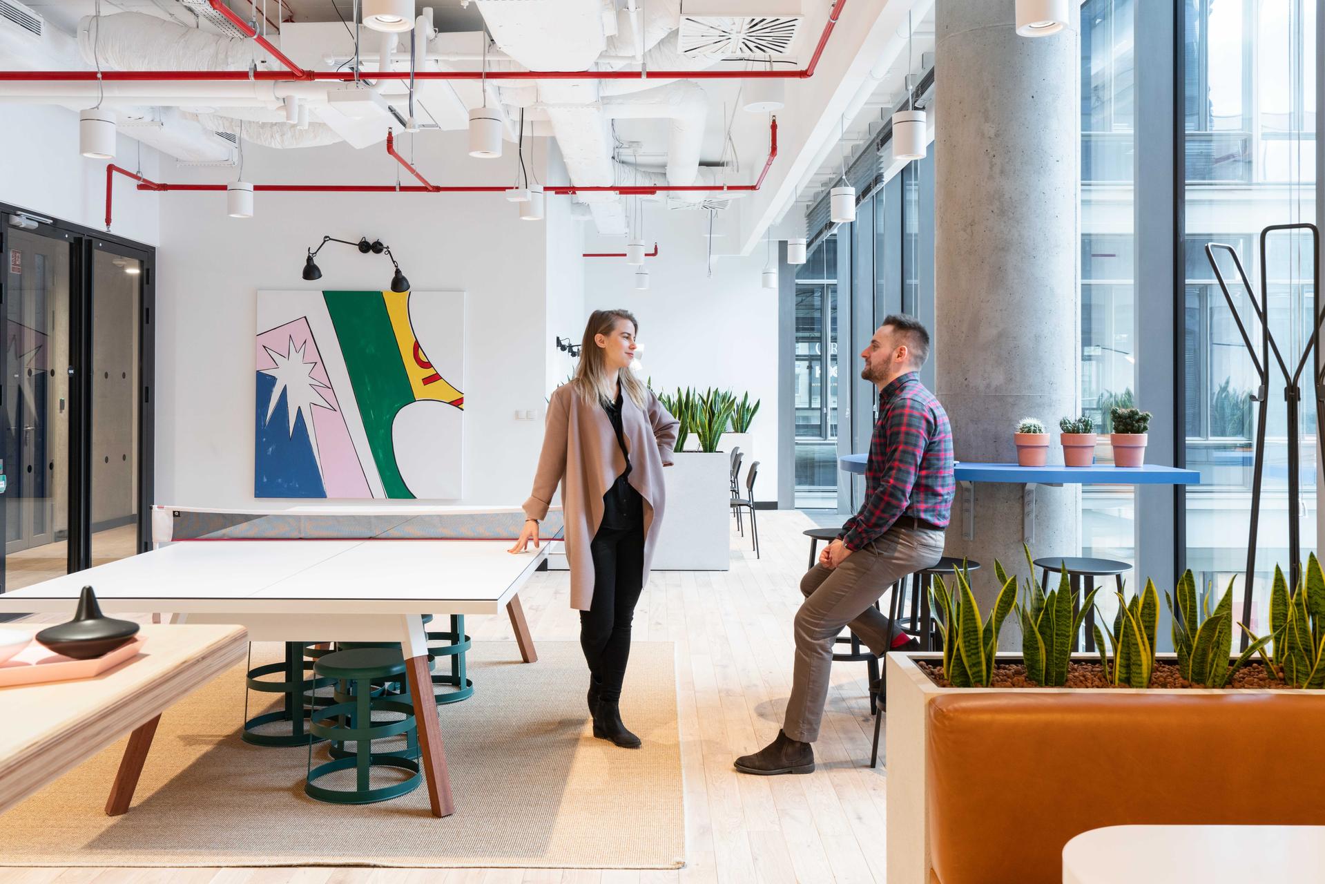 Przestrzenie coworkingowe WeWork w dzielnicy Warszawa-Śródmieście, stanowiącej biznesowo-kulturalne centrum miasta, są idealnym wyborem dla kreatywnych przedsiębiorców. Na każdym piętrze znajdziesz inteligentnie zaprojektowane przestrzenie sprzyjające współpracy, eleganckie prywatne biura oraz przestronne sale konferencyjne. Na dodatek zwierzęta są tu mile widziane, więc można zabrać ze sobą swojego pupila. Rowerownia, liczne miejsca parkingowe, a także bliskie sąsiedztwo dworca Warszawa Centralna sprawiają, że jest to też idealna lokalizacja dla osób dojeżdżających. Miłośnicy rozrywkowego stylu życia i zespoły świętujące sukces także się tu odnajdą. Czekają na nich niezliczone atrakcje w postaci okolicznych barów i restauracji oraz ekscytujące życie nocne. Jeśli chcesz założyć firmę lub powiększyć istniejący zespół, umów się z nami na wizytę — zobacz na własne oczy, co mamy do zaoferowania.